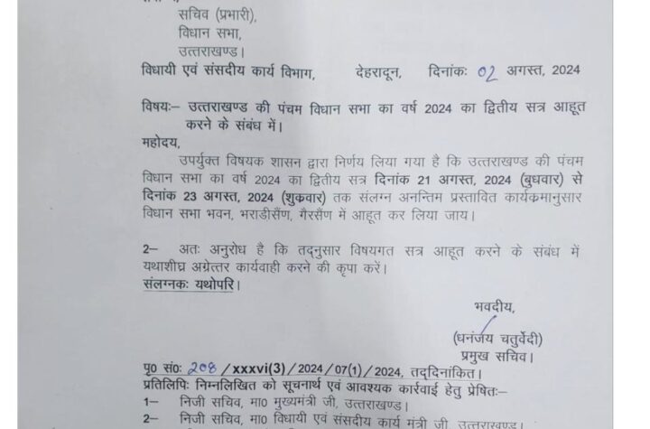 देहरादून : विधानसभा का मानसून सत्र 21 से 23 अगस्त तक होगा। सत्र का...