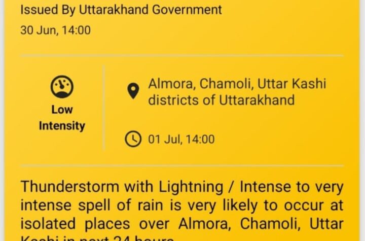 देहरादून: मौसम विभाग ने अलर्ट जारी किया है। अगले 24 घंटों में अल्मोडा, चमोली,...