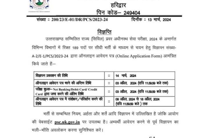 देहरादून। उत्तराखण्ड लोक सेवा आयोग ने उत्तराखण्ड सम्मिलित राज्य (सिविल) प्रवर अधीनस्थ सेवा परीक्षा,...