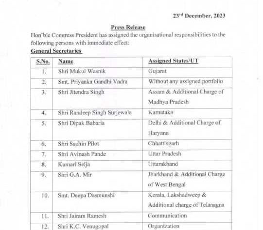 देहरादून: कांग्रेस आला कमान ने कई राज्यों के प्रभारी बदले हैं। इसी क्रम में...