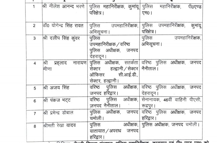 देहरादून। पुलिस महकमे हुए हुए ट्रांसफर, 8 आईपीएस अधिकारियों के हुए तबादले, IPS नीलेश...