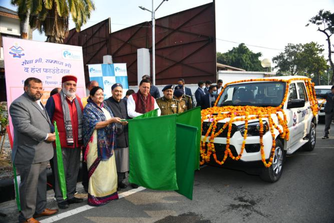 मुख्यमंत्री श्री पुष्कर सिंह धामी ने शुक्रवार को मुख्यमंत्री कैम्प कार्यालय परिसर से हंस फाउण्डेशन द्वारा पुलिस विभाग को प्रदान किये गये वाहनों को फ्लैग ऑफ किया। हंस फाउण्डेशन द्वारा ये वाहन उत्तराखण्ड पुलिस को हिल पैट्रोलिंग व इमरजेंसी रिस्पॉन्स हेतु दिये जा रहे हैं। हंस फाउण्डेशन द्वारा उत्तराखण्ड पुलिस को 101 वाहन प्रदान किये जा रहे हैं। शुक्रवार को 21 वाहन प्रदान किये गये। इस अवसर पर हंस फाउण्डेशन के संस्थापक श्री भोले जी महाराज, माता मंगला जी, पुलिस महानिदेशक श्री अशोक कुमार भी उपस्थित थे।