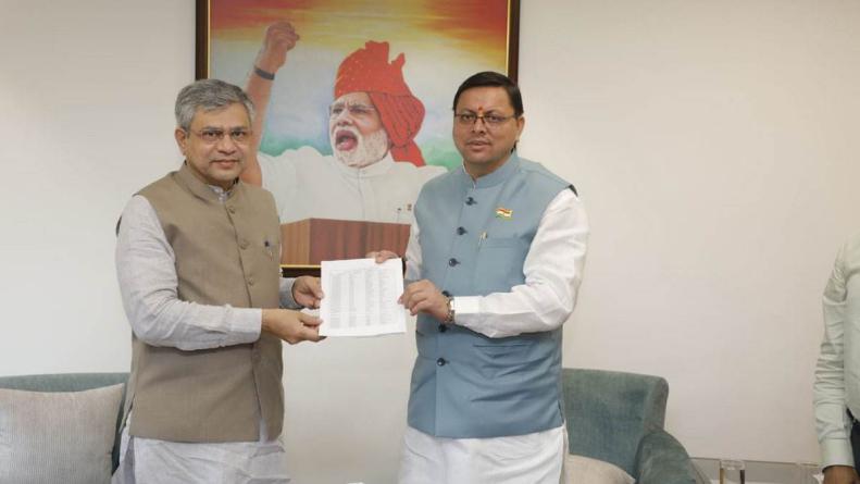 देहरादून : मुख्यमंत्री पुष्कर सिंह धामी शुक्रवार देर शाम चार दिनी दौरे पर नई दिल्ली में हैं। मुख्यमंत्री धामी ने शनिवार को नई दिल्ली में केंद्रीय मंत्री, रेल, संचार, इलेक्ट्रॉनिक्स व सूचना तकनीक अश्विनी वैष्णव से शिष्टाचार भेंट की।