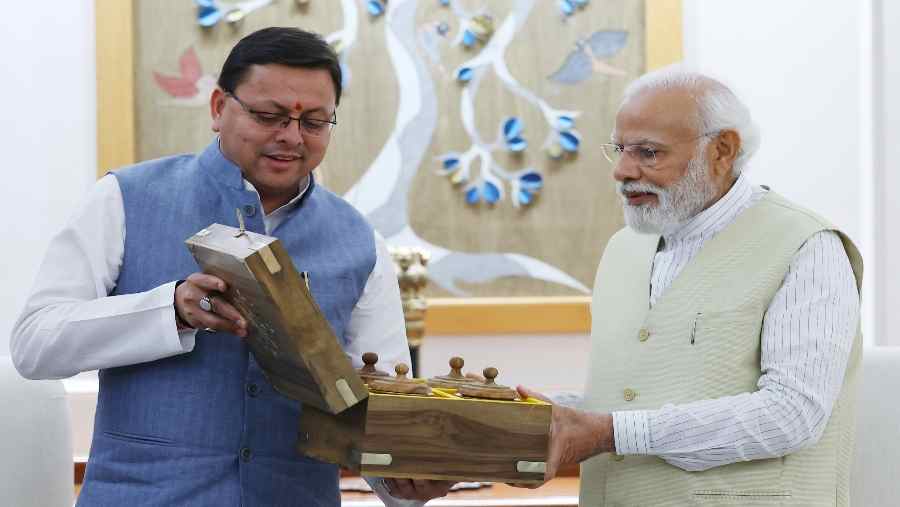 मुख्यमंत्री पुष्कर सिंह धामी ने प्रधानमंत्री नरेन्द्र मोदी से नई दिल्ली में शिष्टाचार भेंट कर उत्तराखंड के विकास में उनके मार्गदर्शन और सहयोग के लिए आभार व्यक्त किया। मुख्यमंत्री ने प्रधानमंत्री को श्री केदारनाथ और श्री बद्रीनाथ धाम का प्रसाद, गंगा तुलसी, गंगोत्री यमुनोत्री, अलकनंदा और मंदाकिनी का गंगाजल के साथ ही रुद्राक्ष की माला भी भेंट की।