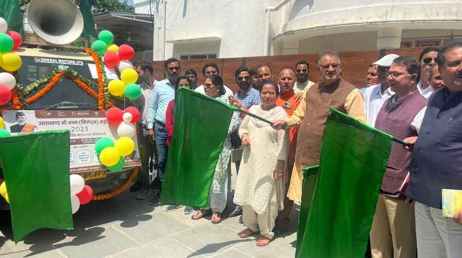 गौरतलब है कि आगामी 13 से 16 मई 2023 को सर्वे ऑफ इंडिया हाथी बड़कला में उत्तराखण्ड श्री अन्न महोत्सव 2023 भव्य आयोजित किया रहा है। जिसमे केंद्रीय कृषि मंत्री नरेंद्र सिंह तोमर, केंद्रीय कृषि राज्य मंत्री कैलाश चौधरी सहित अन्य राज्यों के कृषि मंत्री होटल व्यवसाय, कृषि वैज्ञानिक, किसान, उद्योग जगत सहित कई लोग उपस्थित रहेंगे। इस अवसर पर मंत्री गणेश जोशी ने आज यह मिलेट्स प्रचार रथों को रवाना किया गया है। उन्होंने कहा देश के प्रधानमंत्री नरेंद्र मोदी जी के प्रयासों से वर्ष 2023 को अंतराष्ट्रीय मिलेट वर्ष घोषित किया गया है। उन्होंने कहा उत्तराखंड में मुख्यमंत्री पुष्कर सिंह धामी के नेतृत्व में मिलेट के प्रोत्साहन और उसके उत्पादन को लेकर प्रदेश सरकार द्वारा निरंतर कार्य किया जा रहा है।