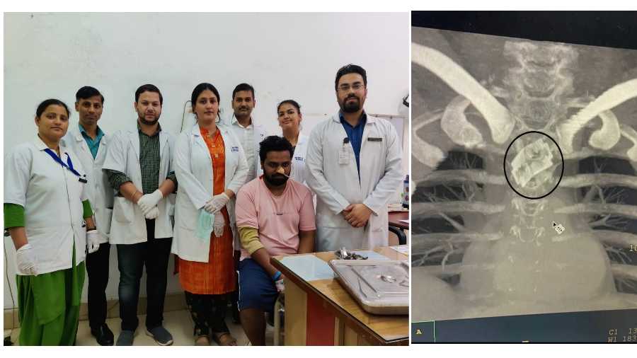 देहरादून। जाको राके साइंया मार सके न कोई। डाॅक्टर को यूं ही धरती का भगवान नहीं कहा जाता है। यहां यह कहना इसलिए भी उचित होगा क्योंकि श्री महंत इन्दिरेश अस्पताल के डाॅक्टरों ने एक मरीज़ की खाने की नाल में फंसे ब्लेड को निकालकर मरीज़ को नया जीवन दिया है। आॅपरेशन के द्वारा डाॅक्टरों ने ब्लेड को आहार नाल से सफलतापूर्वक बाहर निकाला। आॅपरेशन के बाद मरीज़ बिल्कुल ठीक है। यह जानकारी श्री महंत इन्दिरेश अस्पताल के नाक कान गला रोग विभाग के डाॅ शरद हरनोट ने दी।