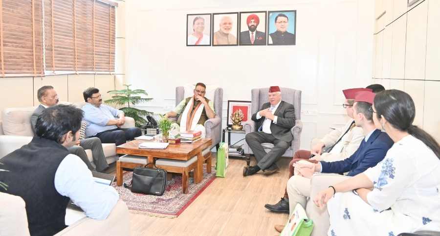 देहरादून: बुधवार को प्रदेश के कृषि एवं कृषक कल्याण मंत्री गणेश जोशी से उनके शासकीय कार्यालय में जर्मन सांसदों के एक प्रतिनिधिमंडल ने मुलाकात की। इस मुलाकात में जर्मनी के सांसद जुगन हाइट, स्पीकर फ्रेंज ऐवर मेऊरर, डायरेक्टर डॉ. ऐड्रिन हैक, कोर्नड ऐड्यूनर आदि लोगों को कृषि मंत्री ने पहाड़ी टोपी और जैविक उत्पाद भेंट कर उनका स्वागत किया।