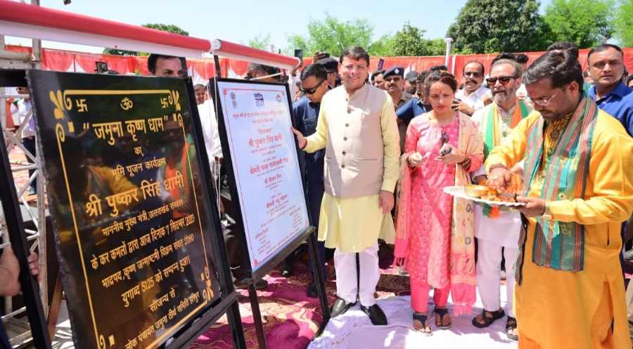 देहरादून: मुख्यमंत्री पुष्कर सिंह धामी ने गुरुवार को कालसी, देहरादून स्थित रामलीला मैदान में आयोजित कार्यक्रम में प्रतिभाग करते हुए यमुना नदी के तट पर हरिपुर (कालसी) में स्नान घाट/ यमुना घाट के निर्माण कार्य एवं लोक पंचायत द्वारा प्रस्तावित जमुना कृष्ण धाम (मंदिर) का शिलान्यास किया। इस दौरान उन्होंने जौनसार बावर के बॉलीबुड सिंगर अभिनव चौहान के भजन “हरिपुर में आंनद सजेगा” का भी विमोचन किया।