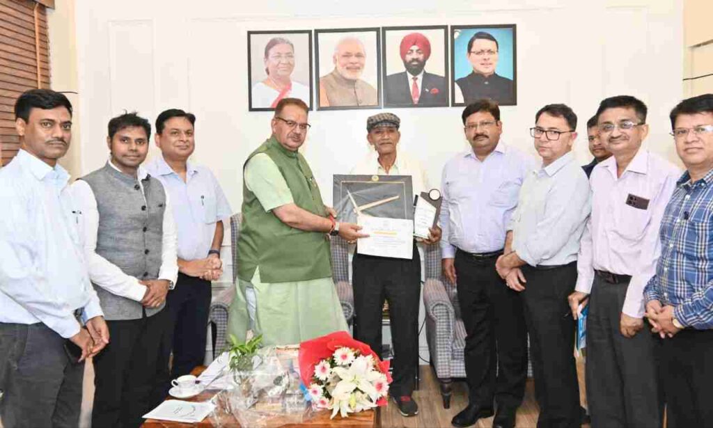 देहरादून । कैबिनेट मंत्री गणेश जोशी ने जनपद नैनीताल के कृषक हर्ष सिंह डंगवाल को पुष्प गुच्छ एवं शॉल ओढ़ाकर सम्मानित किया।गौरतलब है, कि ग्रेटर नोएडा में जैविक इंडिया एवार्ड के 4th एवार्ड कार्यक्रम में नैनीताल के ग्राम सुनकिया, ब्लॉक- धारी के कृषक हर्ष सिंह डंगवाल को जैविक कृषि के क्षेत्र में बेहतरीन कार्य करने के लिए जैविक इंडिया अवार्ड प्रदान किया गया। मंत्री गणेश जोशी ने कृषक को बधाई एवं शुभकामनाएं देते हुए और लोगो को भी प्रोत्साहित करने की बात कही।