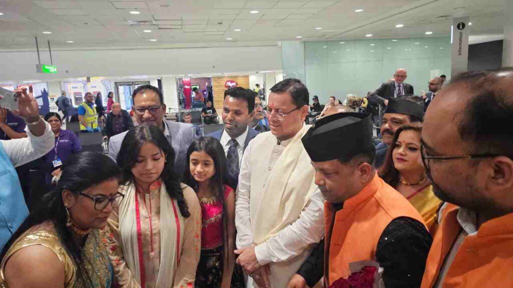 लंदन। चार दिवसीय ब्रिटेन दौरे लेक लिए मुख्यमंत्री पुष्कर सिंह धामी सोमवार को लंदन एयरपोर्ट पहुँचे। एयरपोर्ट पर मुख्यमंत्री धामी के स्वागत में बड़ी संख्या में प्रवासी भारतीय पहुँचे । लंदन पहुँचने पर भारतीय समुदाय और उत्तराखंड मूल के लोगों के द्वारा मुख्यमंत्री का उत्तराखण्ड के पारंपरिक वाद्य यंत्रों के वादन तथा उत्तराखण्ड की परम्परा के अनुसार गर्मजोशी से स्वागत किया गया।