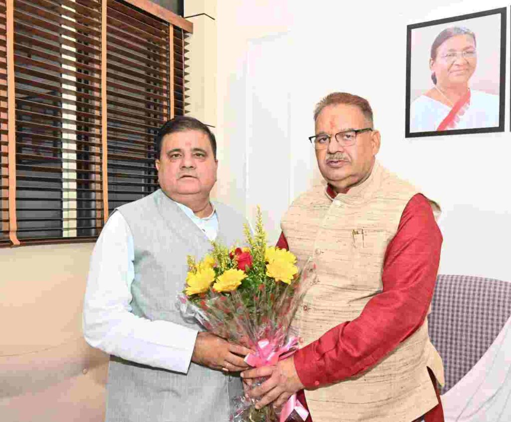 देहरादून। देहरादून के न्यू कैंट रोड स्थित शासकीय आवास पर हुई भेट के दौरान भारतीय जानता पार्टी के प्रदेश अध्यक्ष महेंद्र भट्ट ने कैबिनेट मंत्री गणेश जोशी को प्रधानमंत्री नरेन्द्र मोदी की 12 अक्टूबर को पिथौरागढ़ में हुई जनसभा की अपार सफलता पर बधाई दी। इस अवसर पर कैबिनेट मंत्री गणेश जोशी ने बीजेपी प्रदेश अध्यक्ष को पुष्पगुच्छ देकर उनका आभार जताया।