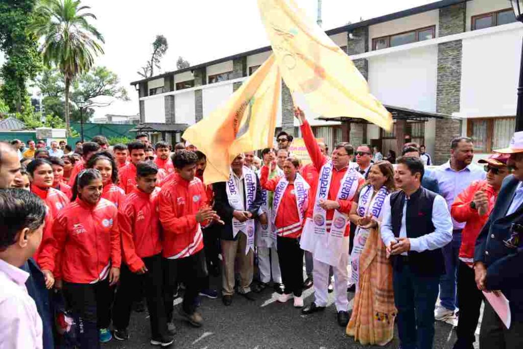 देहरादून। मुख्यमंत्री पुष्कर सिंह धामी ने रविवार को मुख्य सेवक सदन, मुख्यमंत्री आवास, देहरादून में आगामी 37वें राष्ट्रीय खेल, गोवा में उत्तराखण्ड राज्य से प्रतिभाग करने वाले खिलाड़ियों के दल को फ्लैग ऑफ कर रवाना किया।