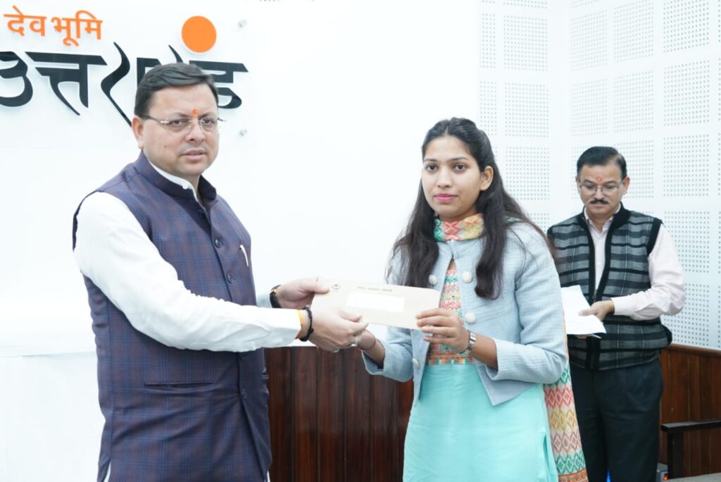देहरादून: मुख्यमंत्री पुष्कर सिंह धामी ने रविवार को मुख्यमंत्री कैंप कार्यालय, देहरादून में राज्य सम्पत्ति विभाग के अन्तर्गत स्वागती पद पर 8 संस्तुत अभ्यर्थियो को नियुक्ति पत्र वितरित किए।