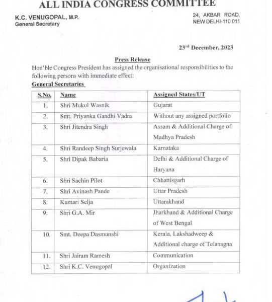 देहरादून: कांग्रेस आला कमान ने कई राज्यों के प्रभारी बदले हैं। इसी क्रम में कुमारी सैलजा को उत्तराखंड का प्रभारी बनाया गया। वहीं देवेंद्र यादव को पंजाब की जिम्मेदारी दे दी गई है।