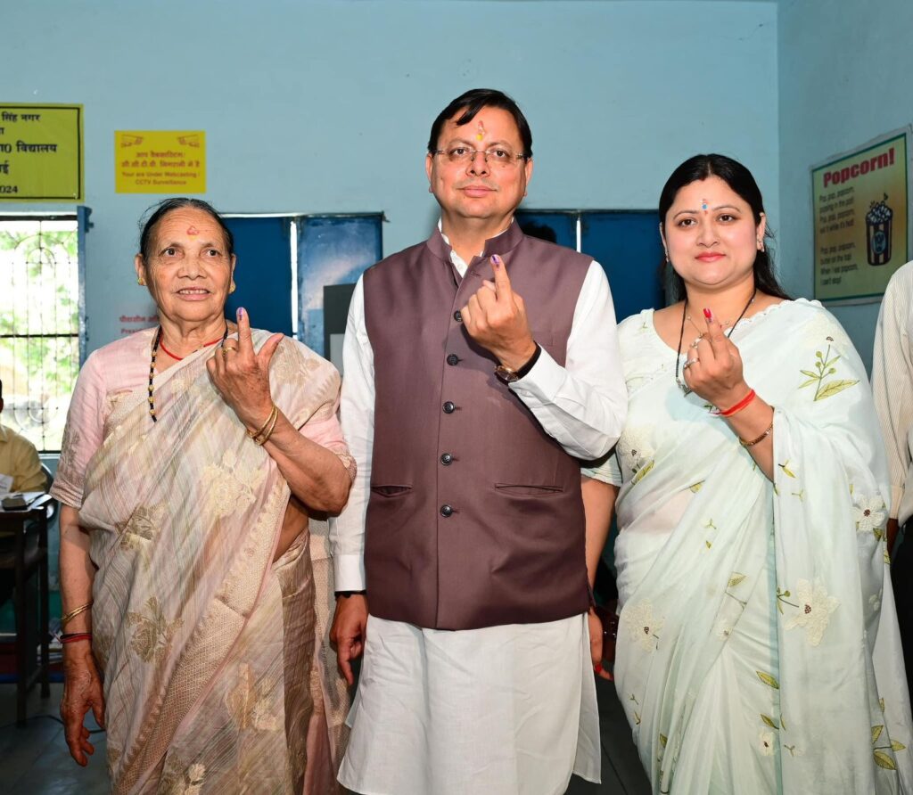 मुख्यमंत्री शुक्रवार सुबह खटीमा स्थित नगरा तराई मतदान केंद्र पर पहुँचे और एक सामान्य मतदाता की तरह कतार में लगकर वोट डाला। वोट डालने के बाद मुख्यमंत्री ने लोगों से अपील की कि आप भी सुदृढ़ और आत्मनिर्भर भारत के निर्माण में अपनी जिम्मेदारी का निर्वहन करते हुए बड़ी संख्या में मतदान करें। उन्होंने विशेषकर पहली बार वोट डाल रहे युवाओं से अनुरोध किया कि अधिक से अधिक संख्या में मतदान कर देश के उज्ज्वल भविष्य निर्माण में अपना योगदान दें। उन्होंने पहले मतदान, फिर जलपान का भी संदेश दिया।