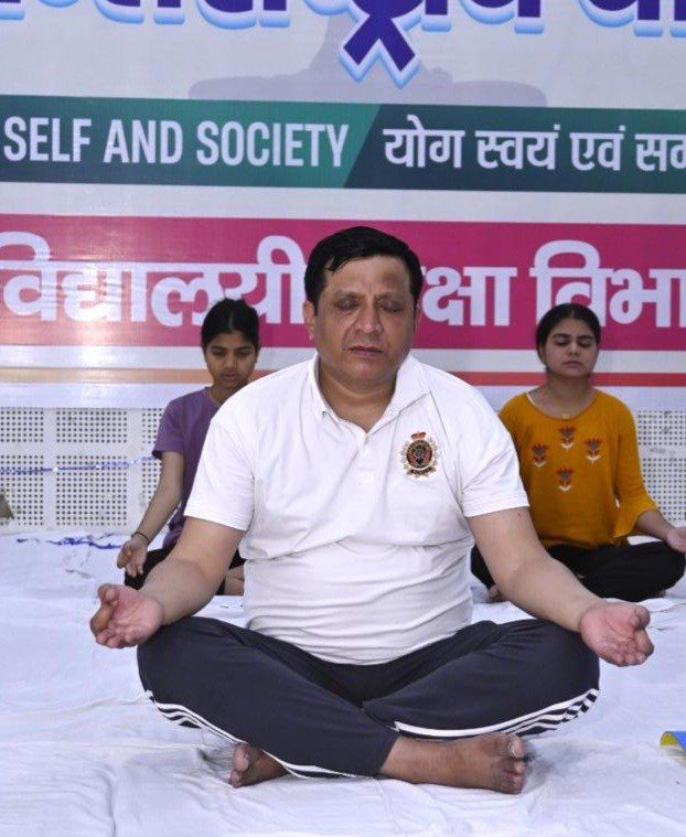 देहरादून। 10वें अन्तराष्ट्रीय योग दिवस के अवसर पर बंशीधर तिवारी महानिदेशक विद्यालयी शिक्षा उत्तराखण्ड की अध्यक्षता में राजीव गांधी नवोदय विद्यालय ननूरखेड़ा देहरादून में अर्न्तराष्ट्रीय योग दिवस का शुभारम्भ दीप प्रज्वलन एवं शंखनाद के साथ किया गया। इस अवसर पर महानिदेशालय विद्यालयी शिक्षा, प्रारम्भिक शिक्षा निदेशालय, माध्यमिक शिक्षा निदेशालय सीमैट एससीईआरटी अकादमिक शोध एवं प्रशिक्षण समग्र शिक्षा के अधिकारी एवं कार्मिक तथा प्रशिक्षण ले रहे खण्ड शिक्षा अधिकारी उपस्थित रहे। साथ ही सुपर-100 के छात्र छात्राओं द्वारा भी उत्साहपूर्ण बढ़ चढ़कर योग कार्यक्रम में प्रतिभाग किया गया।