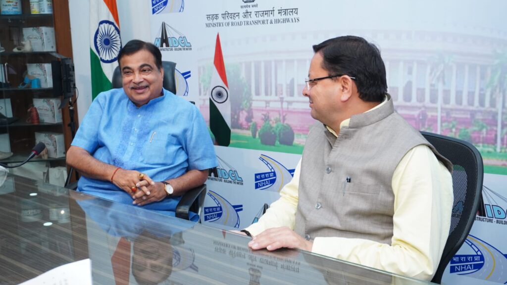 देहरादून: मुख्यमंत्री पुष्कर सिंह धामी ने गुरुवार को नई दिल्ली में केंद्रीय सड़क परिवहन एवं राजमार्ग मंत्री नितिन गडकरी से भेंट कर उन्हें प्रदेश की जनता की ओर से पुनः सडक परिवहन और राजमार्ग मंत्रालय का दायित्व मिलने पर बधाई एवं शुभकामनाएं दी। मुख्यमंत्री ने कहा कि उनके कुशल नेतृत्व में सड़क परिवहन और राजमार्ग मंत्रालय, अभूतपूर्व कीर्तिमान स्थापित करेगा।