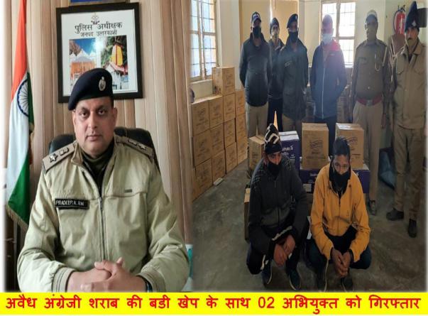 आगामी विधान सभा सामान्य निर्वाचन-2022 के दृष्टिगत प्रदेश भर मे आदर्श आचार संहिता लागू है, चुनाव के दौरान अवैध गतिविधियों की रोकथाम हेतु पुलिस उपमहानिरीक्षक,गढवाल परिक्षेत्र द्वारा पुलिस को आवश्यक निर्देश निर्गत किये गये हैं। निष्पक्ष एवं शान्तिपूर्ण चुनाव हेतु *पुलिस अधीक्षक उत्तरकाशी, पी0के0 राय द्वारा जनपद उत्तरकाशी में चुनाव के दौरान अवैध गतिविधियों व मादक पदार्थों की अवैध तस्करी की रोकथाम हेतु सभी क्षेत्राधिकारी/कोतवाली/थाना/चौ की प्रभारी/ एस0ओ0जी0 तथा ए0डी0टी0एफ0 को लगातार सक्रिय रह कर कार्यवाही करने के निर्देश दिये हुये हैं।* जिस क्रम में गत रात्रि को प्रभारी एसओजी, अजय सिंह व उ0नि0 रोहित कुमार के नेतृत्व में एस0ओ0जी0 एवं धरासू पुलिस की संयुक्त टीम द्वारा चैकिंग के दौरान स्थान देवीसौड़ आर्कब्रिज के पास यात्री स्टैण्ड पर करीब साढ़े तीन बजे दो व्यक्तियों यतेन्द्र व यशपाल सिंह को वाहन संख्या- UK 09CA-0778 (पिकअप बुलेरो) से 148 पेटी अवैध अंग्रेजी शराब का परिवहन करते हुये गिरफ्तार किया गया। वाहन को पुलिस द्वारा मौके पर ही सीज कर दिया गया।