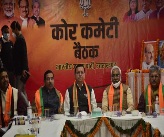 प्रदेश भाजपा मुख्यालय में शनिवार को केंद्रीय मंत्री एवं प्रदेश चुनाव प्रभारी प्रल्हाद जोशी, मुख्यमंत्री पुष्कर सिंह धामी, प्रदेश अध्यक्ष मदन कौशिक, प्रदेश प्रभारी दुष्यंत कुमार गौतम, प्रदेश महामंत्री संगठन अजेय, पूर्व मुख्यमंत्री रमेश पोखरियाल निशंक, विजय बहुगुणा, त्रिवेंद्र सिंह रावत व तीरथ सिंह रावत समेत अन्य नेताओं की मौजूदगी में हुई प्रदेश चुनाव समिति की बैठक में दावेदारों के पैनल पर विमर्श हुआ। डेढ़ घंटे चली बैठक में विधानसभा क्षेत्रवार चर्चा की गई। कुछेक सीटों पर एकाध नाम जोड़े गए तो कुछ से हटाए गए।
