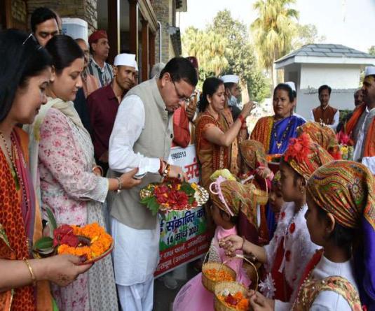 पुष्कर सिंह धामी ने बच्चों के साथ मनाया लोकपर्व