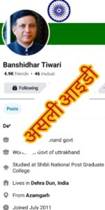 डीजी सूचना, बंशीधर तिवारी की फर्जी फेसबुक आइडी बनाकर साइबर ठगों ने किया ठगी का प्रयास